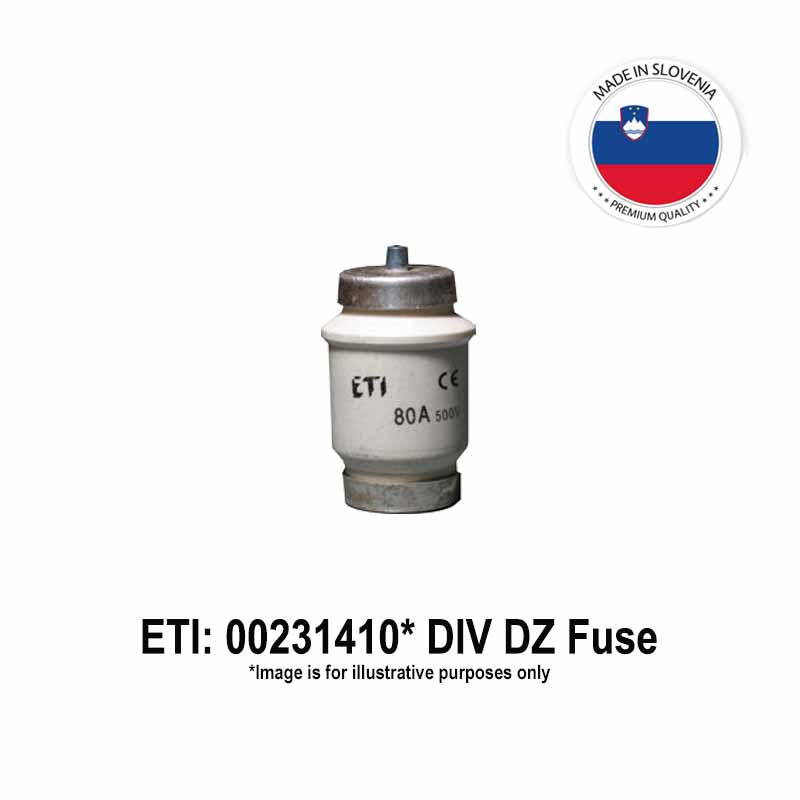 ETI DIV Time Delay-Fuse: 100 Amps, 500 Vac/50 kA, 600 Vdc/8 kA, Operating Class: DZ, Type: DIV, for Fuse Base Size: R1-1/4"