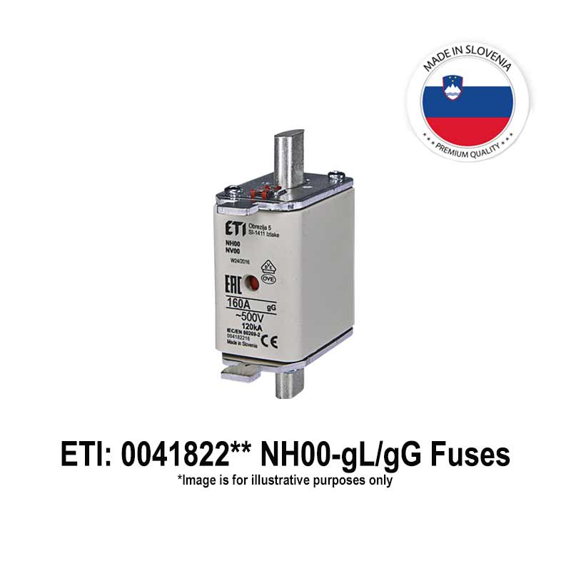 ETI DIN NH gL-gG HRC Fuses with Dual Indicator: 160 Amps, 500 Vac/120 kA, Operating Class: gL/Gg, Size: DIN00/NH00