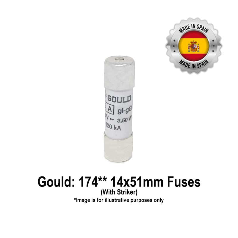 Gould Industrial Cylindrical Fuses: 32 Amps, 690 Vac/120 kA, Operating Class: gL-gG, Size: 14x51mm, with Striker