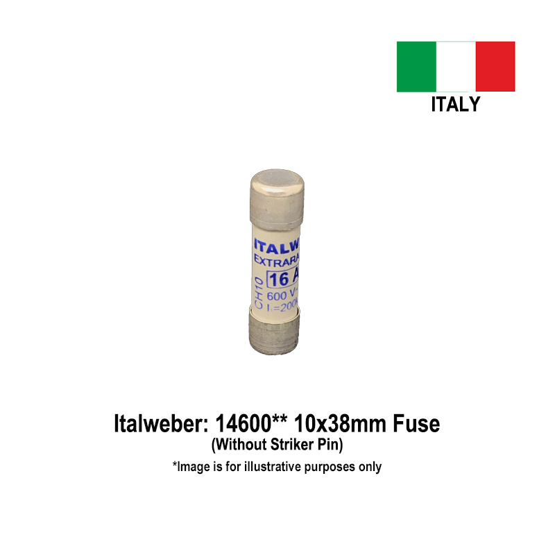 Italweber Cylindrical Semiconductor Protection Fuses: 16 Amps, 600 Vac/200 kA, Operating Class: aR, Size: 10x38mm, without Indicator