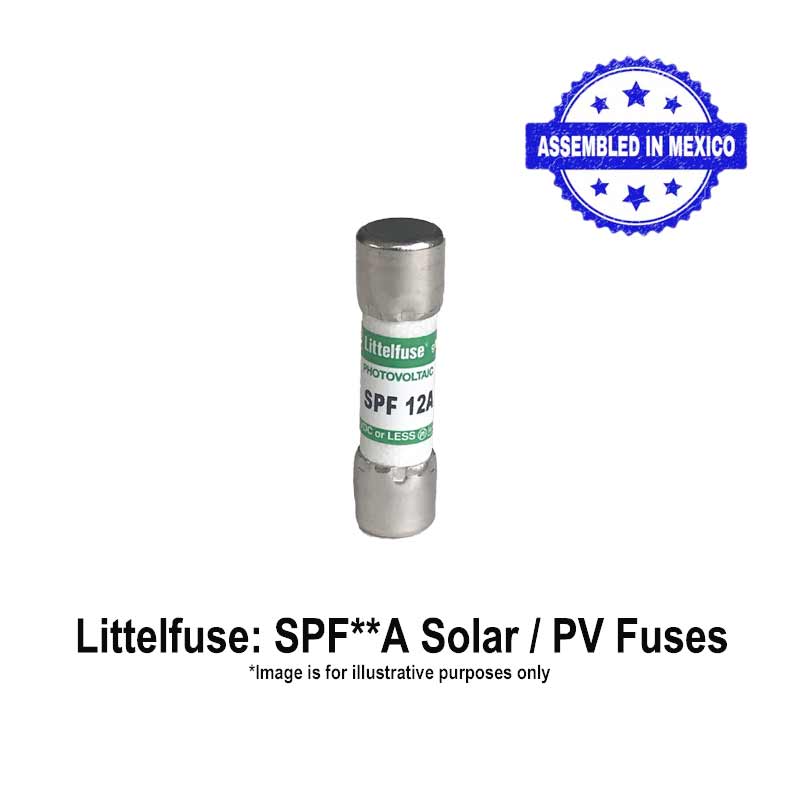 Littelfuse Cylindrical Solar/PV-Fuses: 12 Amps, 1000 Vdc/20kA, Operating Class: gPV, Size: 10x38mm, without Indicator