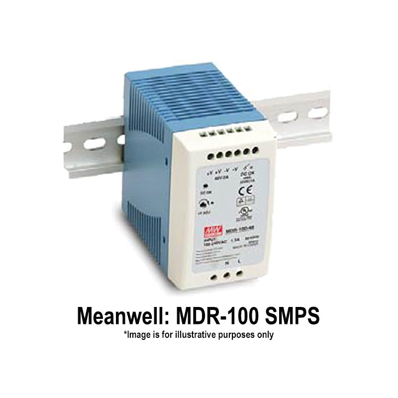 Meanwell Single Phase DIN Rail Mounting 100 Watts SMPS, Input: 85-264 Vac/120-370 Vdc; Output: 12 Vdc/0 - 7.5 Amps; Tol.: +/-1%; R&N: 120 mV; Effi.: 83%; WxHxD: 55x90x100mm