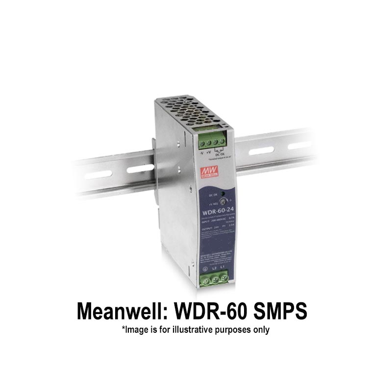 Meanwell Single and Two Phase with Wide Input Voltage Range DIN Rail Mounting 60 Watts SMPS, Input: 180-550 Vac/254-780 Vdc; Output: 5 Vdc/0 - 10 Amps; Tol.: +/-2%; R&N: 100 mV; Effi.: 83.5%/400Vac; WxHxD: 32x125.2x102mm