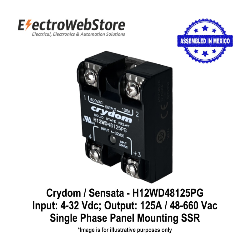 Single Phase Zero Voltage Turn-on SSR (without integrated Heat-Sink): Input: 4-32 Vdc; Output: 125A / 48-660 Vac, with internal Over-Voltage Protection; without Snubber; with Input Status LED Indicator.