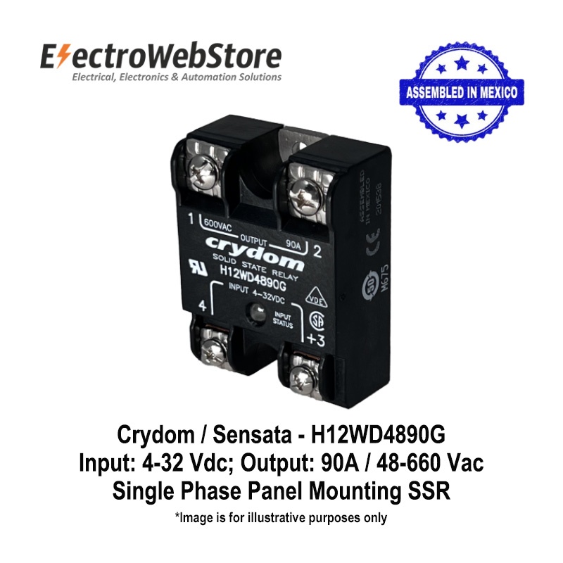 Single Phase Zero Voltage Turn-on SSR (without integrated Heat-Sink): Input: 4-32 Vdc; Output: 90A / 48-660 Vac, without internal Over-Voltage Protection; without Snubber; with Input Status LED Indicator.
