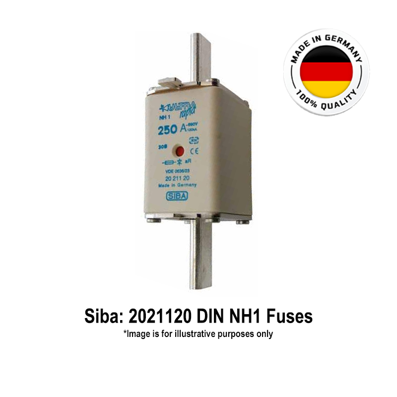 Siba DIN Knife Blade Semiconductor Protection Fuses with Dual Indicator: 63 Amps, 690 Vac/100 kA, Operating Class: gR, Size: DIN1/NH1