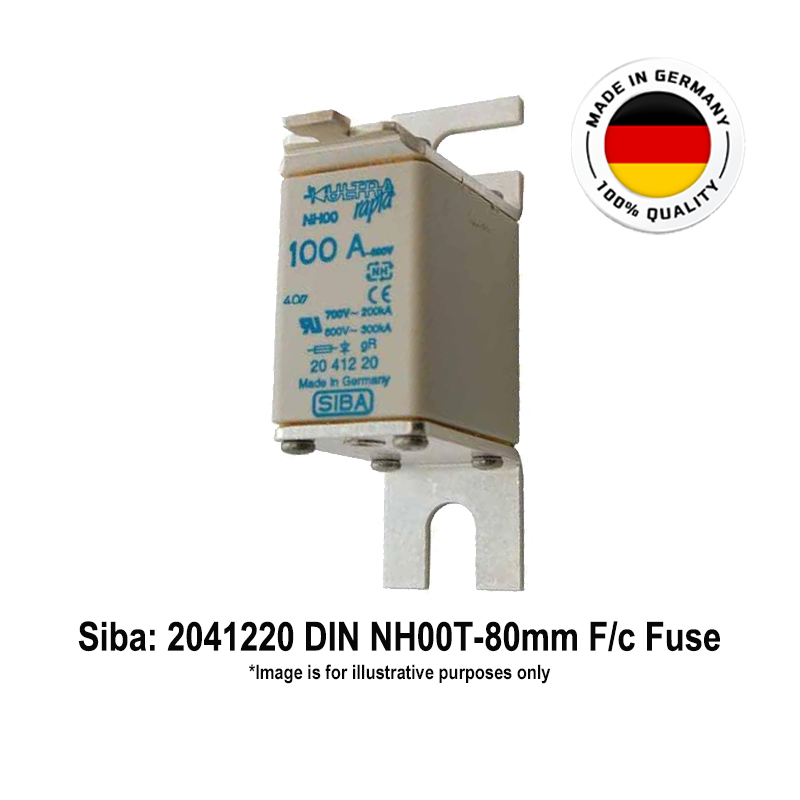 Siba Bolted Contact Semiconductor Protection Fuses: 100 Amps, 690/700 Vac/200 kA, 600Vac/300 kA, Operating Class: aR, Size: DIN/NH00T/80mm