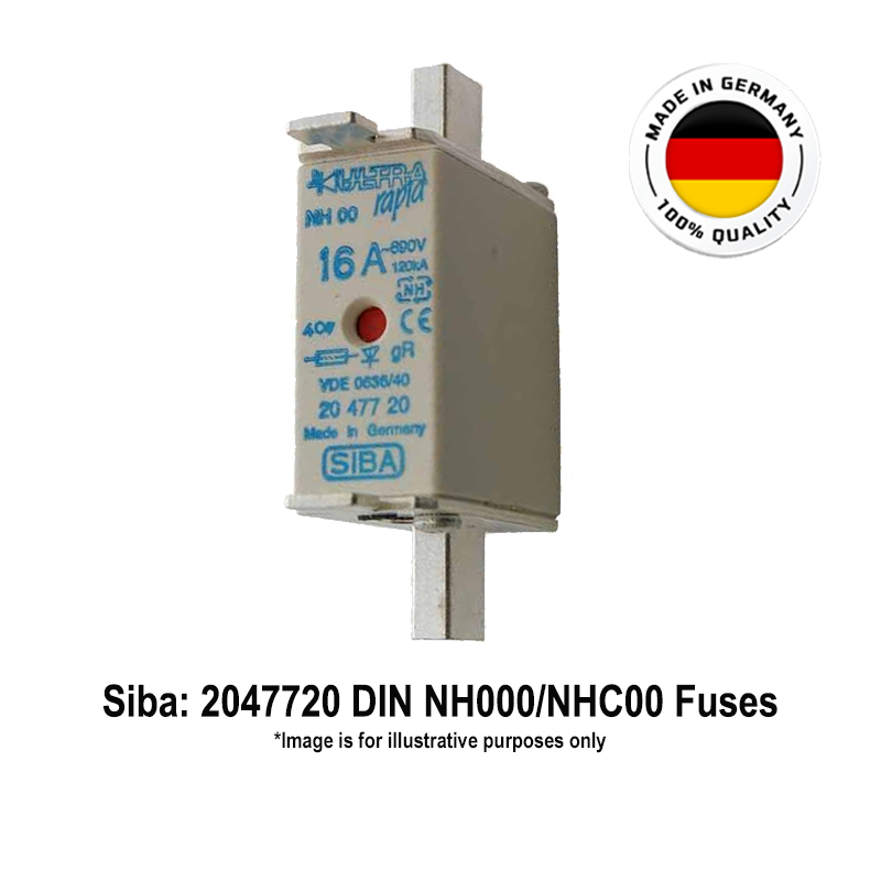 Siba DIN Knife Blade Semiconductor Protection Fuses with Dual Indicator: 10 Amps, 690 Vac/100 kA, Operating Class: gR, Size: DIN000/NH00C