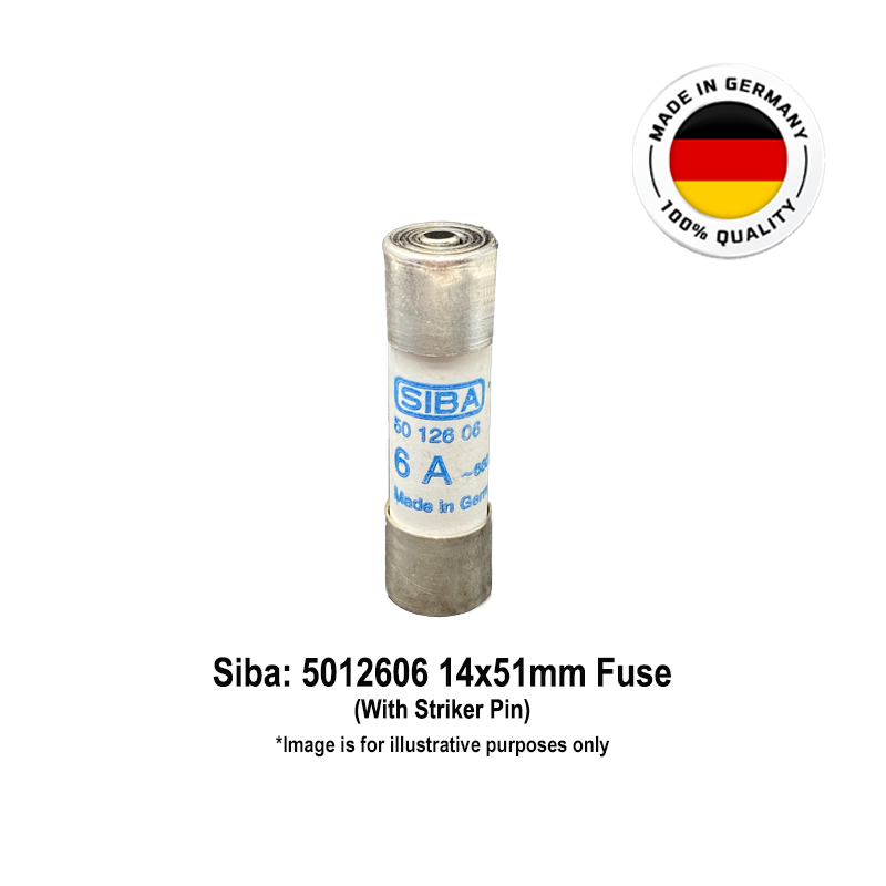 Siba Cylindrical Ultra Rapid Semiconductor Protection Fuses: 6 Amps, 690/700 Vac, 200 kA, Operating Class: gR, Size: 14x51mm, with Striker Pin