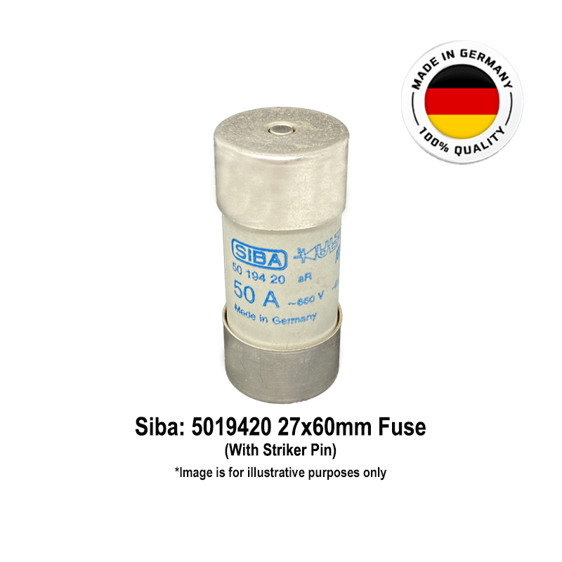 Siba Cylindrical Ultra Rapid Semiconductor Protection Fuses: 50 Amps, 660 Vac, 200 kA, Operating Class: aR, Size: 27x60mm, with Striker Pin